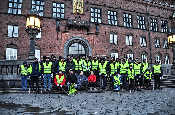 Mens du sikkert lå under den varm dyne tidligt morgen. Tog en flok muslimer gul overtøj på. Unge og ældre samledes i Rådhuspladsen for rydde op. Som de selv skriver på deres Facebook ”Man kan ikke tjene Gud uden at tjene sine medmennesker ”